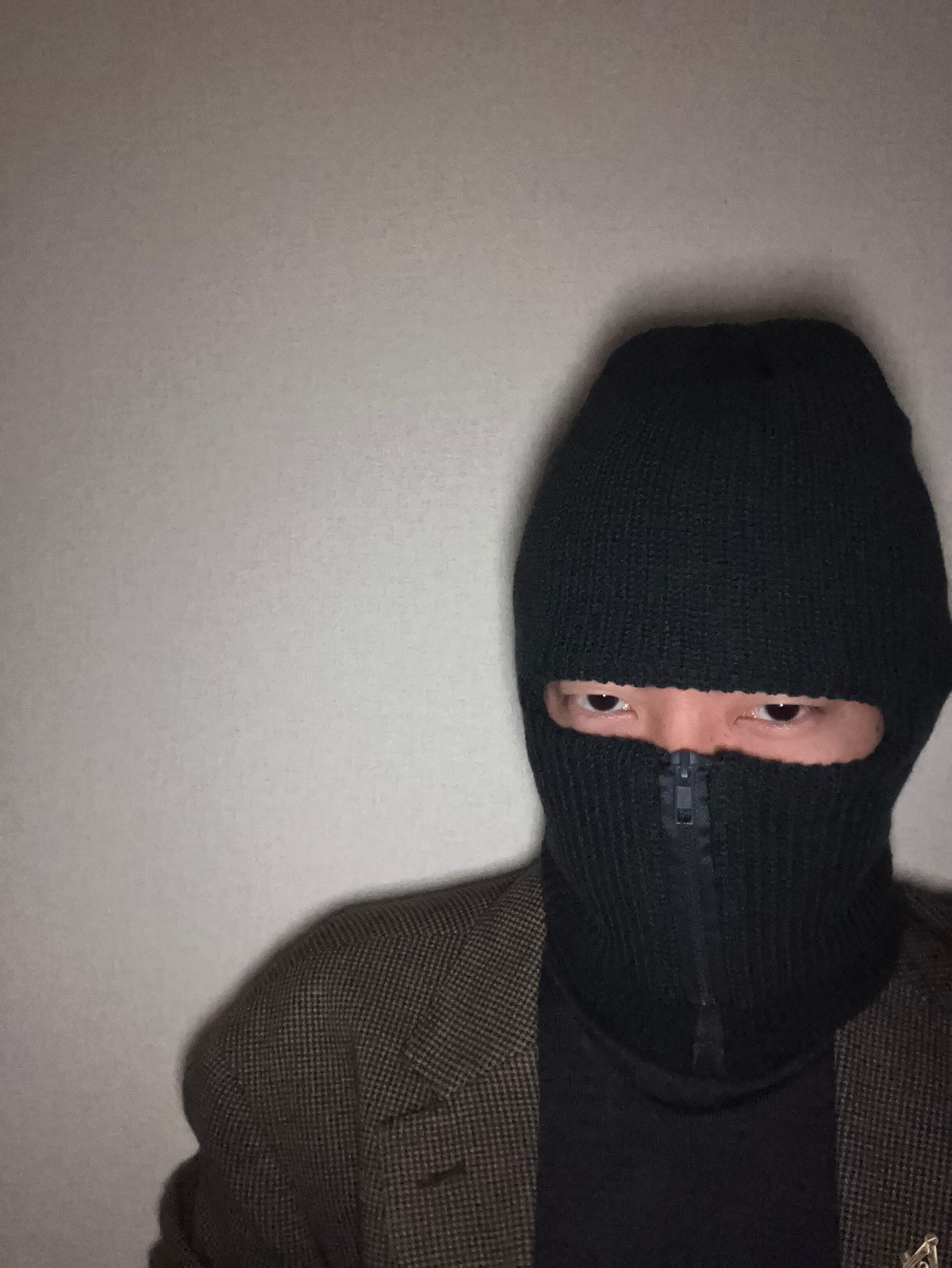 顔まで覆えて暖かいファスナー付目出し帽。